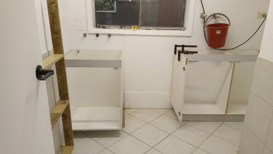 The new revamped width. I didn't want to put doors on these as there is really no space to be able to open them and its a Laundry so shelving I thought would be a good workaround.