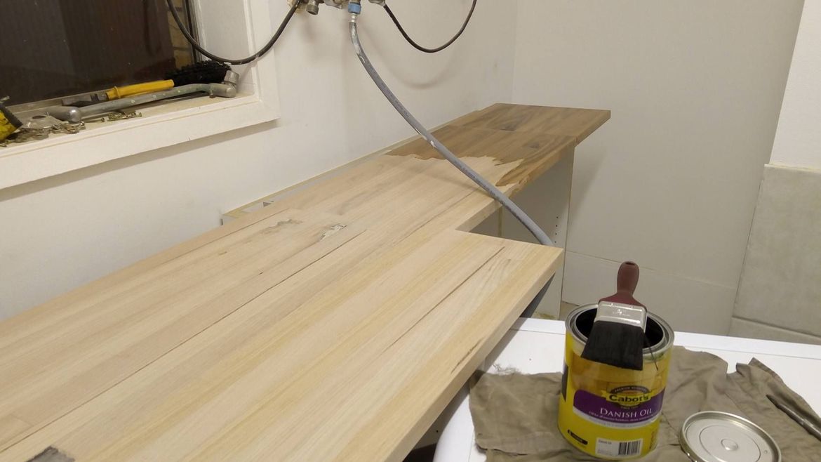 Trying to figure out how to make the thin side of the timber next to the sink strong after cutting it close. (due to the size of the sink)