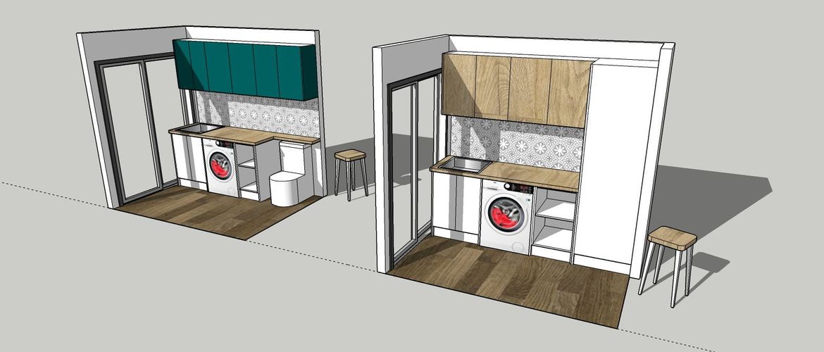 Wow that looks absolutely beautiful!! Thank you! the only thing I’d probably change is I’d get rid of the cupboard on the right hand side (As much as I’d love to have a hidden washing basket in there!) and just keep a bench there so I can store kitty’s litter tray underneath so it’s out of the way. Absolutely love it!