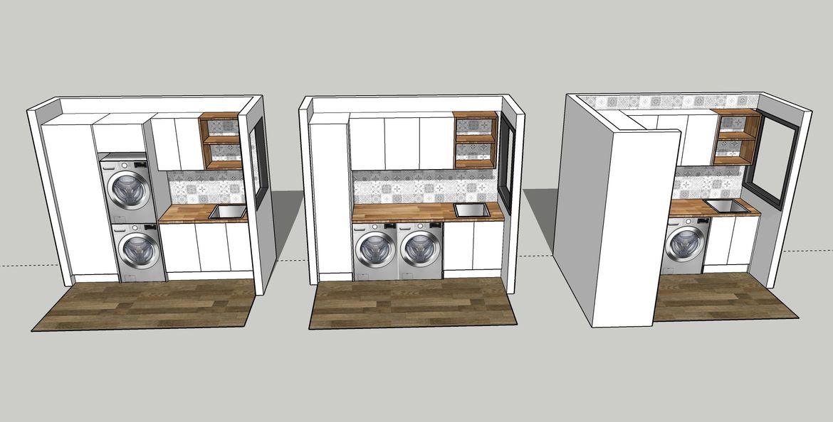 It's great that you've received excellent advice from my colleague @MitchellMc. Just to add to the suggestions made. I think it's important to consider how you'll be moving about in the laundry. Aside from looking great, I think there has to be a folding area and a spot to put the basket on when you've taken the wash out of the machine.