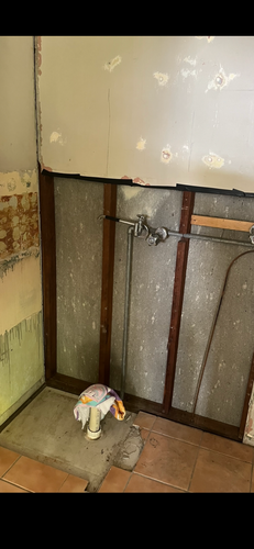Wall panelling was installed next taps and finally, tap and cupboard handle.
