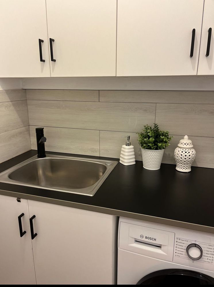 New cabinets, bench top, laundry tub and tapware were installed. Along with wall panelling from bunnings.