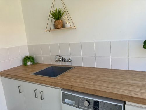Hi Jesse, thank you this laundry is identical to my laundry, I am changing the floor tiles and putting a new bench top. Can I ask please where you sourced your Bamboo bench top from please ???