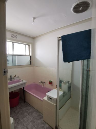 Hi folks, looking for some advice please on layout for a bathroom renovation, where a bathtub is being removed and a toilet put into the existing bathroom, and where the existing toilet is, building a compact ensuite to the second bedroom around that, so turning one bathroom into two. Here are some photos and drawings of the current and proposed layout of the original bathroom which is 1630mm wide and 2570mm long. NB: I will be redoing the floors (with a family friend’s help) due to damage.