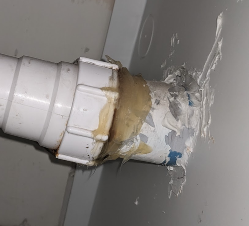 What I am sceptical about is, why there is sealant on this join. I can't quite see any cracks in the pipe that goes into the wall - so am hoping someone who has seen this kind of thing knows whats going on here? Last thing I want is more problems after I scrape the sealant off
