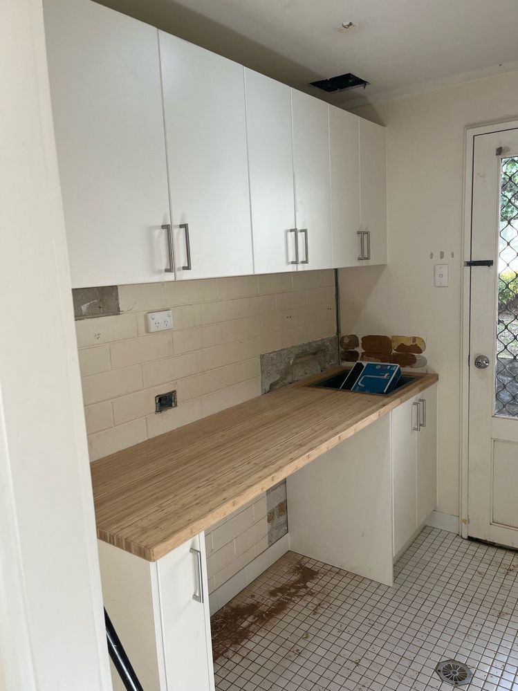 It's good to know that you took all the safety precautions regarding asbestos. The upgrade looks marvellous, and the benchtop really stands out. My favourite part of course are the double sliding doors which have technically given you more space as there is no longer any need to provide swing space for the doors.