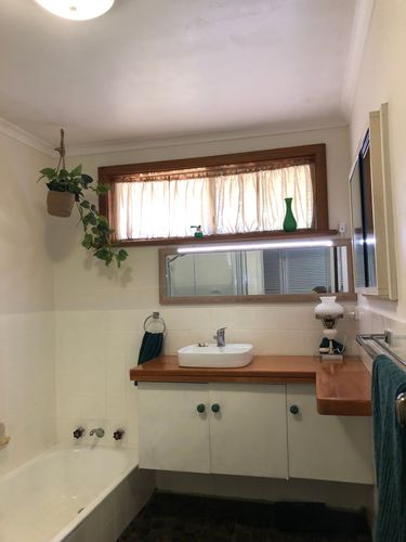 Thank you very much for sharing your bathroom update. Gone are the printed tiles that made the bathroom look so dark, the new paint has made it look bright and refreshing. All those little improvements have definitely transformed the look of your bathroom and given it a modern appeal. The new timber vanity benchtop has become the new focus of the bathroom. A truly impressive budget bathroom makeover.