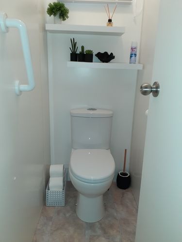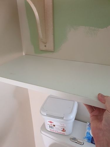 Hello people, lockdown has given me the time to give the old loo an overdue makeover. As the water tank was attached to the wall, the installation of the new loo (from Bunnings) left ugly holes on show. SOLUTION. I attached a couple of floating shelves to hide the holes. Done!