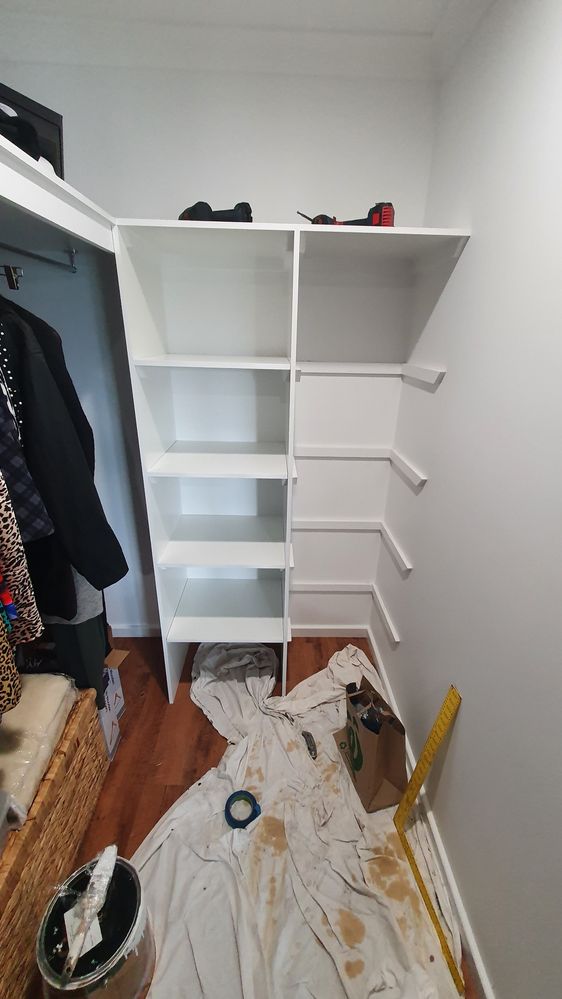 I added some extra shelves to my wife's robe and fitted out the storeroom too.