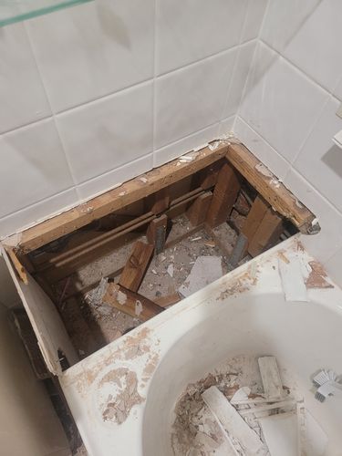 After using a lot of beginners elbow grease , we finally removed that bulky bath off !