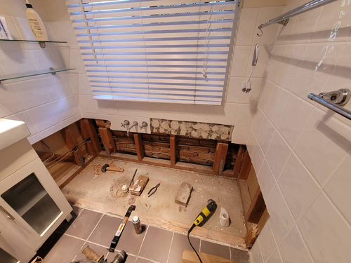 very difficult to cut through the adhesion between the brick and bath using handsaw🥲