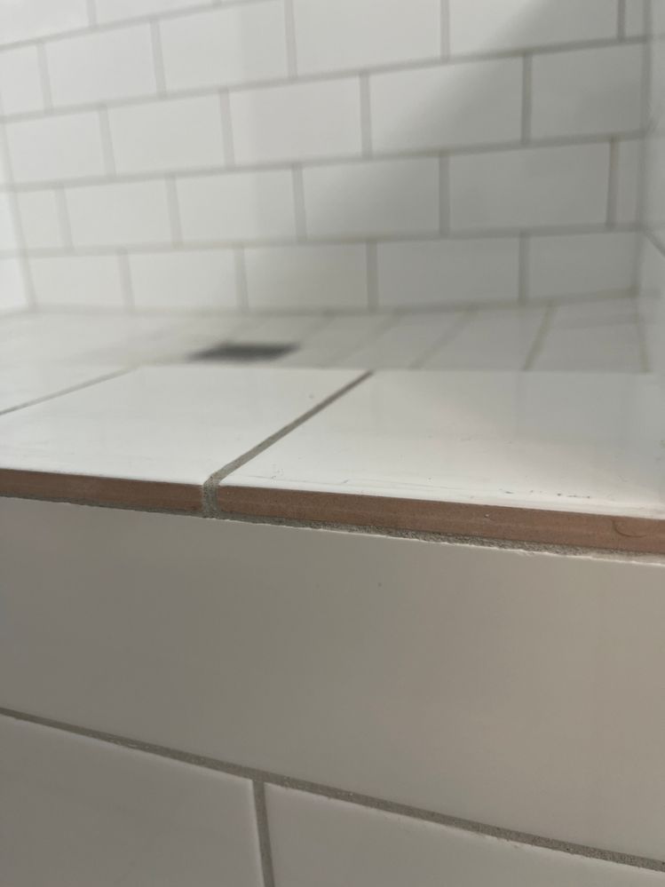 Spoke to a few people, and easiest way to do this (even temporarily) without re-doing all the tiles, is to seal the edge / rim / brown biscuit (some said the biscuit can absorb water, some say a tile should not be penetrated by water from all angles so a bit confused).