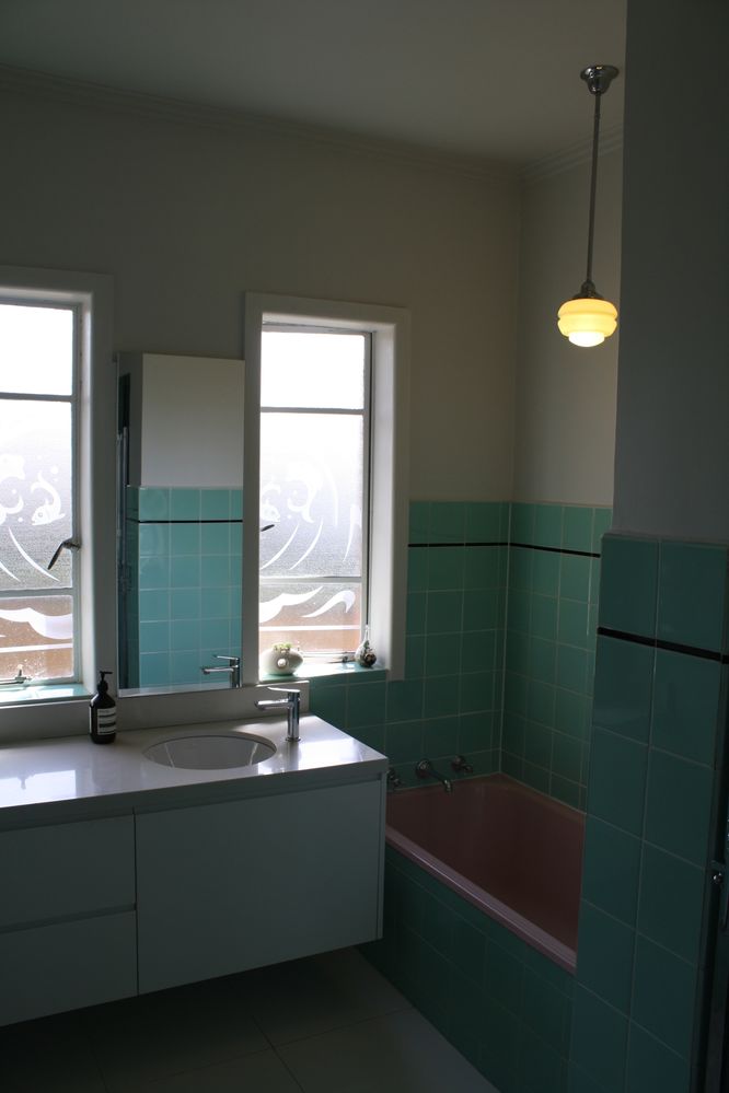 Love that you kept those old retro tiles. I actually loved those 1950s bathrooms & on the walls there would often be three or four porcelian or ceramic ducks flying south for the winter. I miss those ducks!