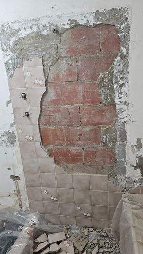I guess I'm thinking that I can probably continue doing the best I can to get the tiles off and perhaps flattening/chiseling off the hard to remove cement/tile glue. And I imagine I could use some kind of cement render to fill and level out the wall? Can I do that here?... and if so, which would be the most suitable cement render to use, please?