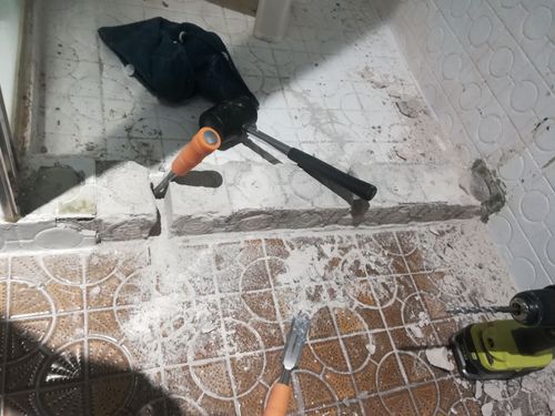 the shower is too small, so i've decided to remove the curbs and make a curbless shower.