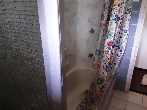 I have a bath with a shower frame sitting on the bath which I would like to remove and replace with a shower curtain. I have removed the sliding doors ...