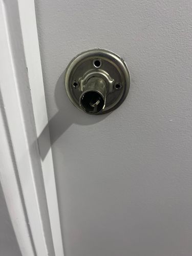 Hi, my bathroom door have a privacy lock and the door has closed and will not open, the knob turns but the bolt dosnt retract, I can’t get to the scr ...