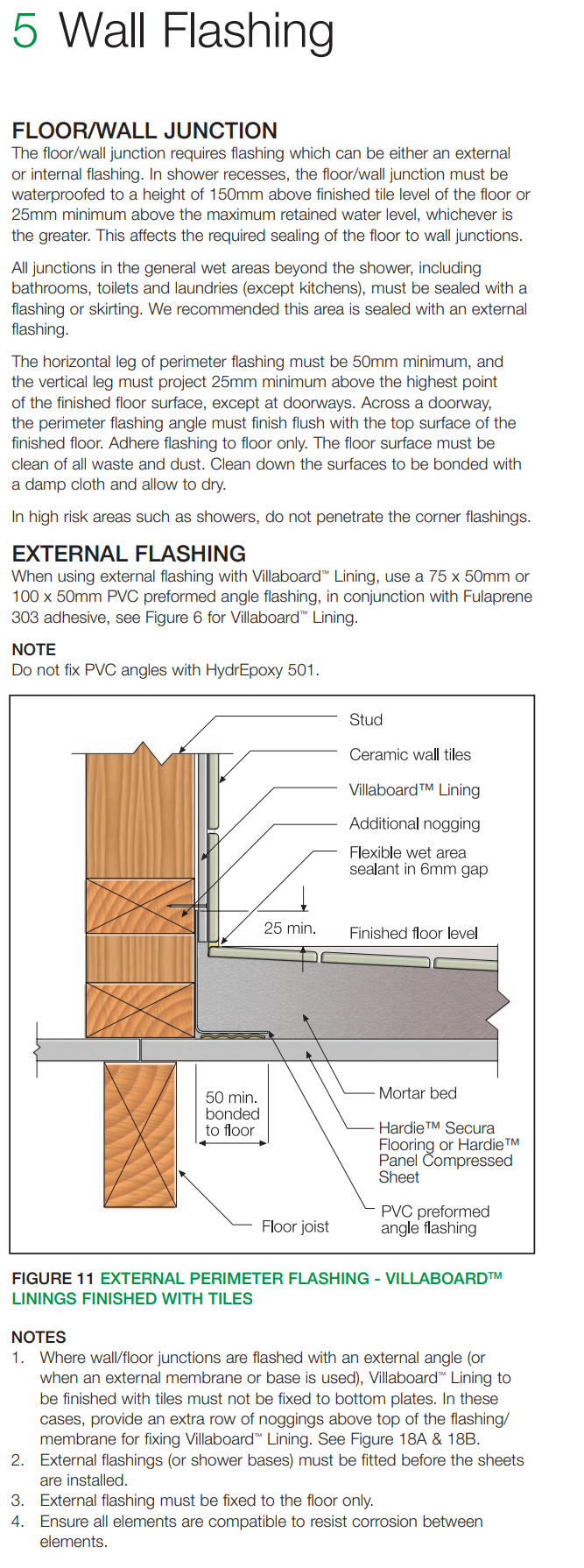 I have used the brutus 50 x 70mm flashing for the floor in the bathroom and the corners of the shower. I used fc11 to seal it to the cement sheet and the corners where it meets. I noticed after it dried 15 hours later I can easily peel it off the pvc. I have read you need to scruff up the surfaces for it to bond properly. It has stuck to the cement sheet on the bottom side but not the joins.