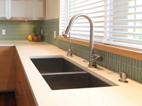 My sister recently installed one of the undermounted exposed kitchen sinks in her place. To be honest, at first I really didn't like it. It's such a different look and really draws your eye to the sink. I have come around to it though and I believe they're becoming more and more popular. - aly