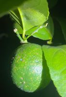 Sap-sucking scale insects can cause black spots on the fruit of citrus trees like lemon and lime.