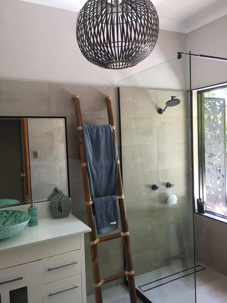 I managed the project and outsourced to tradies for carpentry, electrical, tiling, etc. I began by removing the bath, window and partial wall to allow access to the garden. It’s now a dreamy "zen den" enjoyed by all the family.