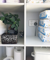 The cube storage unit was purchased a few years before the reno but I’m pretty sure I got it from either Kmart or Target. I used small angle brackets to hang it - two underneath and two at the the top. Flexi Storage Clever Cube 76 x 39 x 146cm 2 x 4 Storage Unit White seem to be similar.