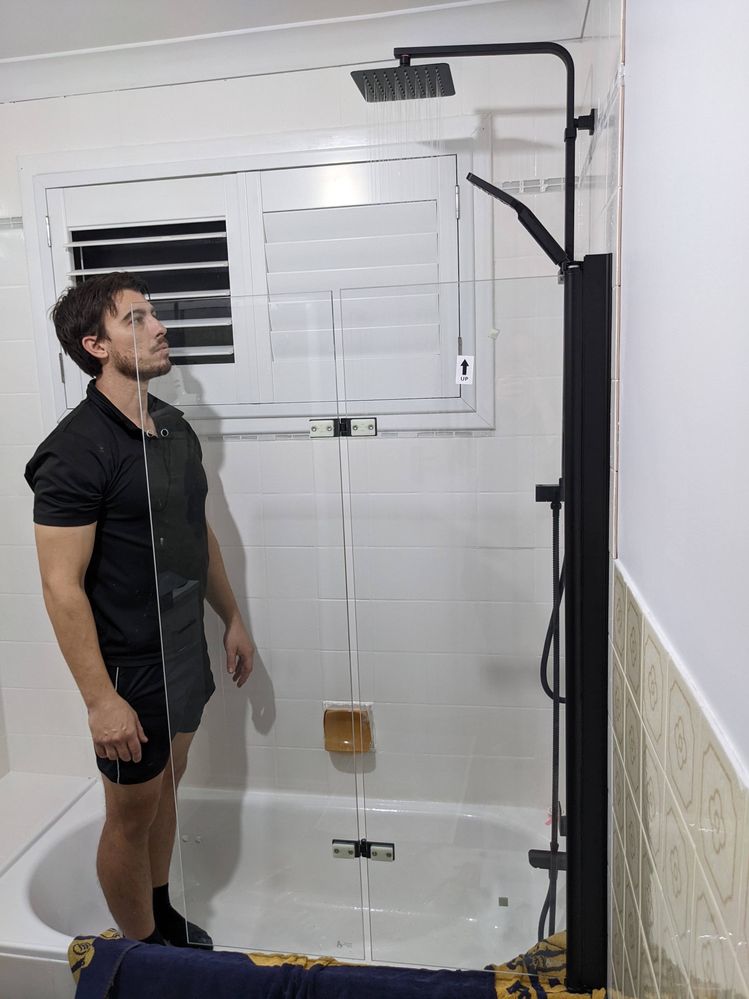 We chose a folding floating shower screen, which can be folded right back to the wall if needed. We now have the option of rain shower as well as a hand-held shower head and the bath tap.
