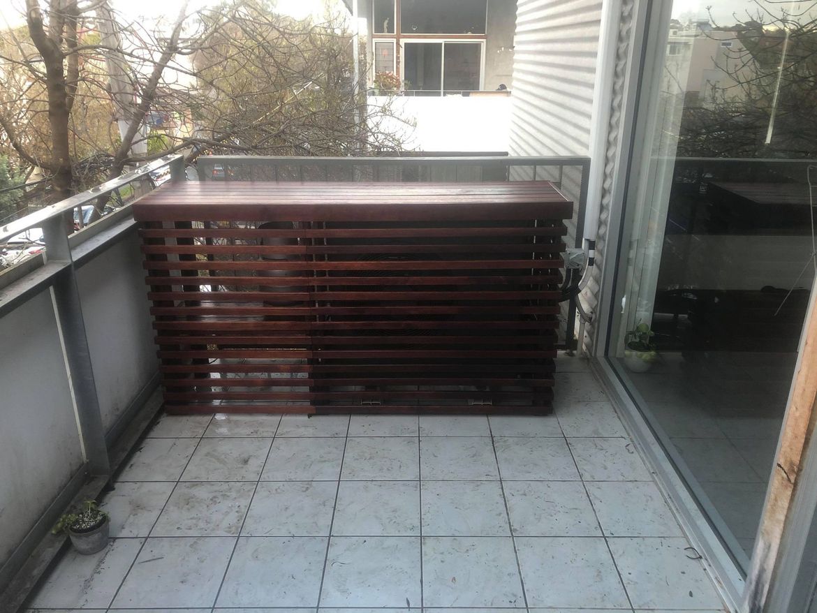 Air conditioning units are a common eyesore on apartment balconies. This custom build utilises Merbau timber.