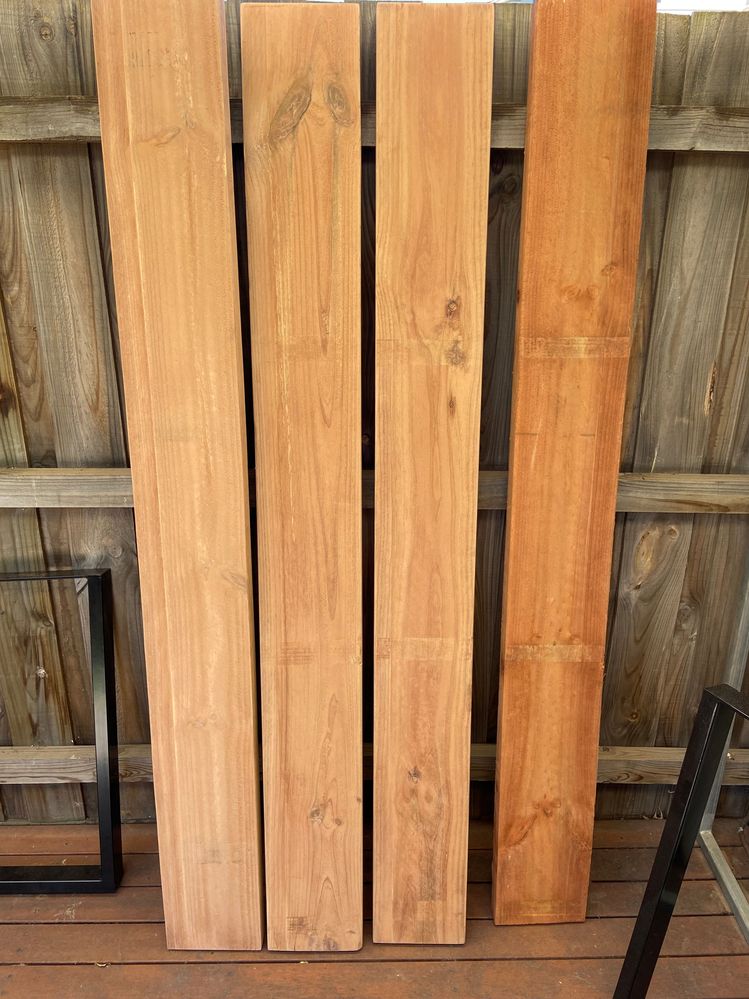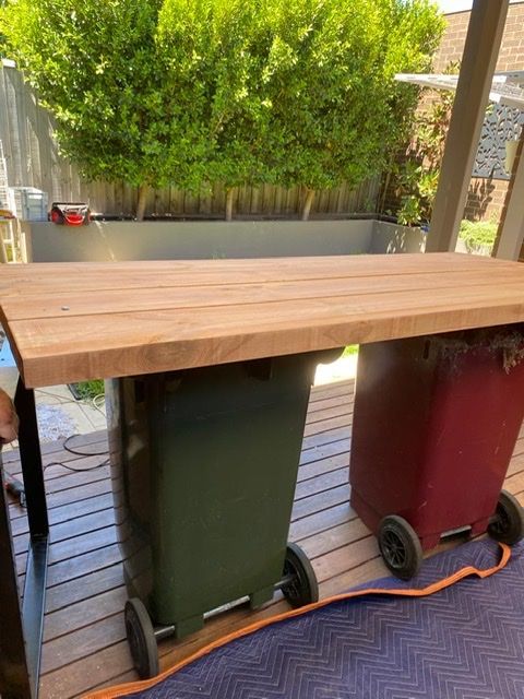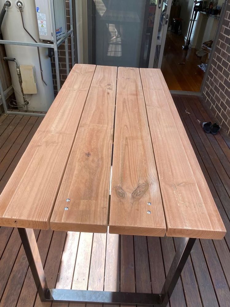 I was designing a outdoor table as a present but couldn’t locate the Merbau fence panel we’d wanted to use as the tabletop.