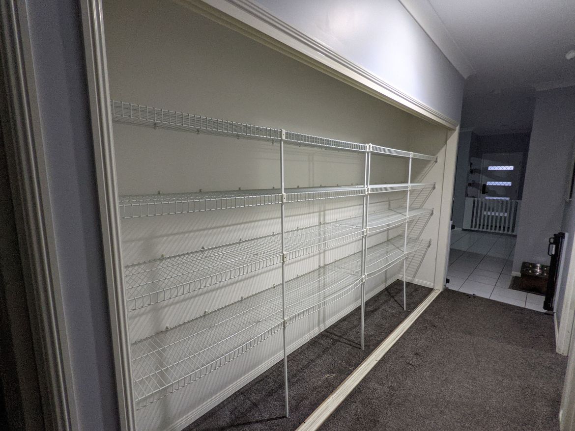 It took us 20 minutes to remove the shelving, and a full day of building and installing to get the new shelves in. Another quick project finished.