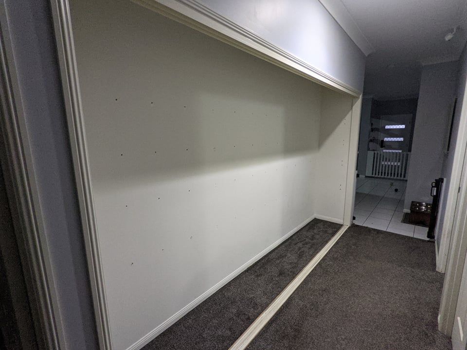 Finally, we reinstalled the sliding doors onto the tracks and refilled the cupboard. Everything fits much better, feels more secure and looks fantastic.