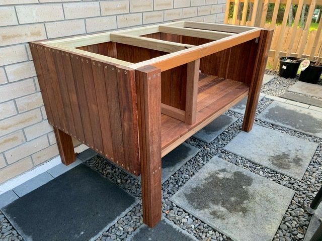 This attractive hardwood storage unit was made using repurposed Kwila decking timber.