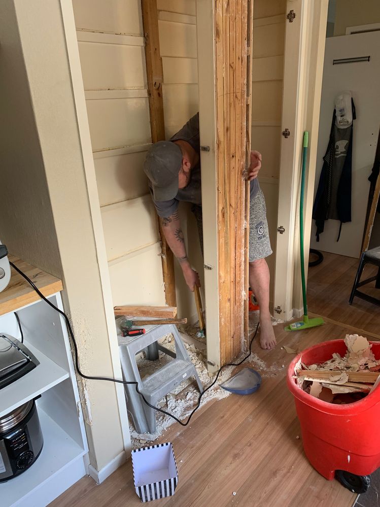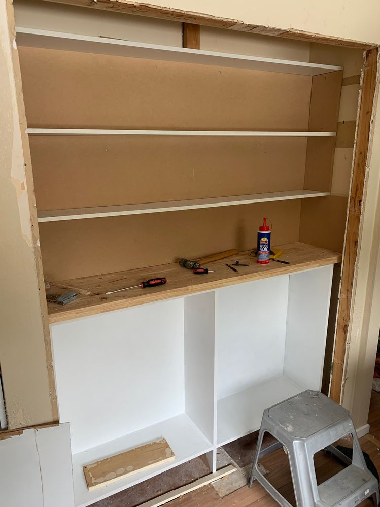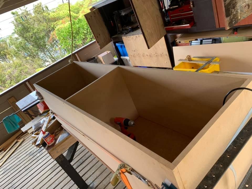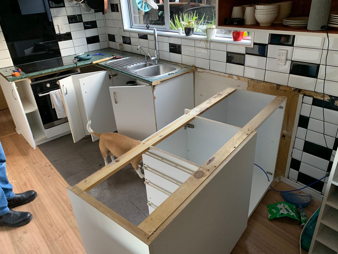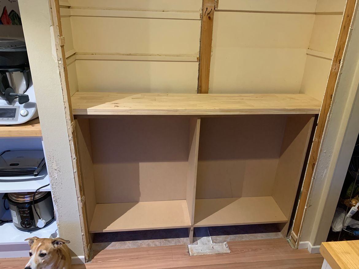 The next part was adding another cupboard and benchtop where the small fridge used to be.