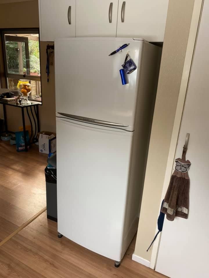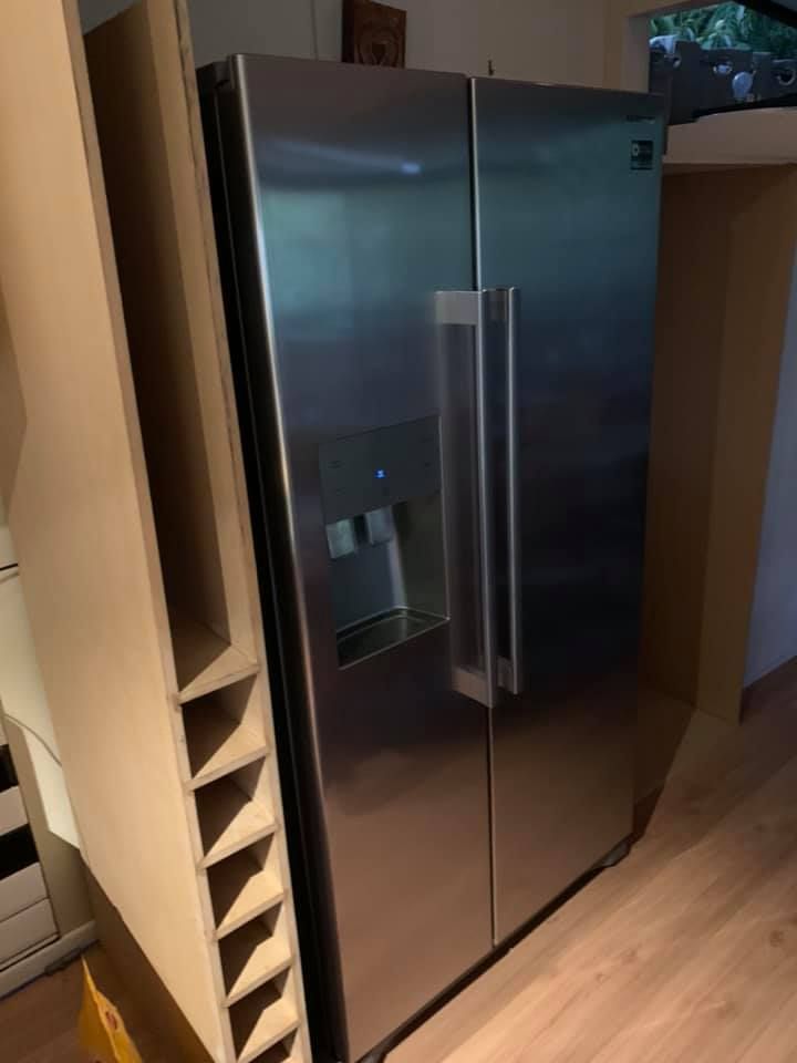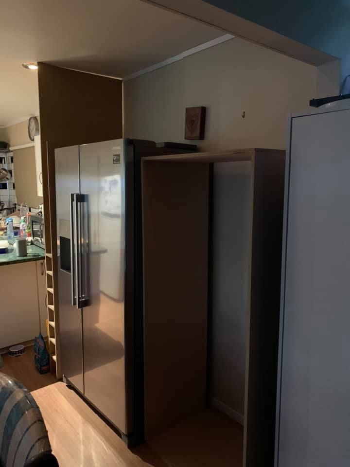 When we bought the house our kitchen didn't have enough space for our double-door fridge. The fridge had to stand in the dining room, which I was not keen on.
