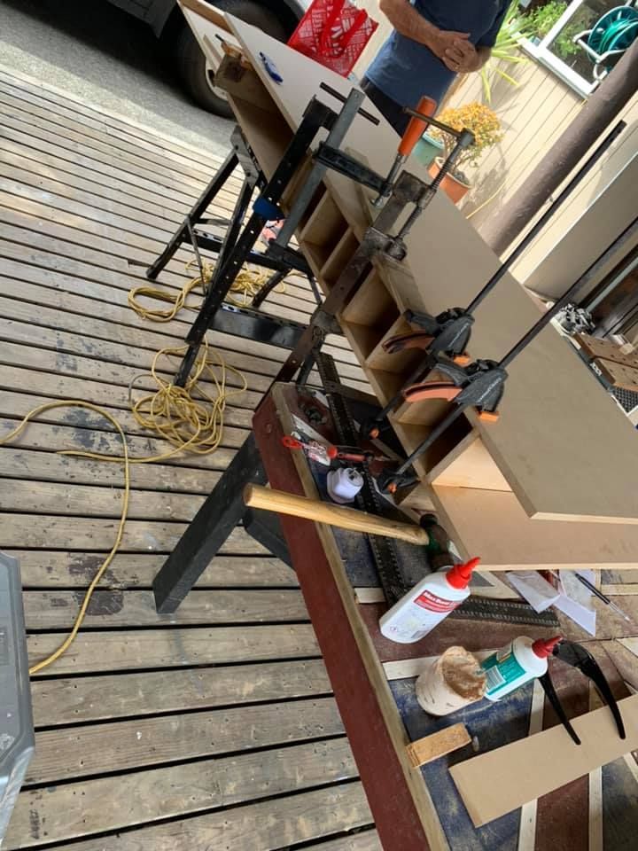 The first job was to build the cabinet to house the fridge, incorporating a wine rack on the side.