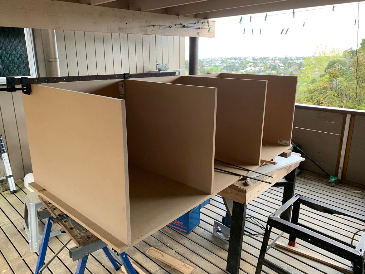 Then it was onto the carcass. I put the plans on paper and worked out how much MDF I needed, managing to cut correctly to use the offcuts too.