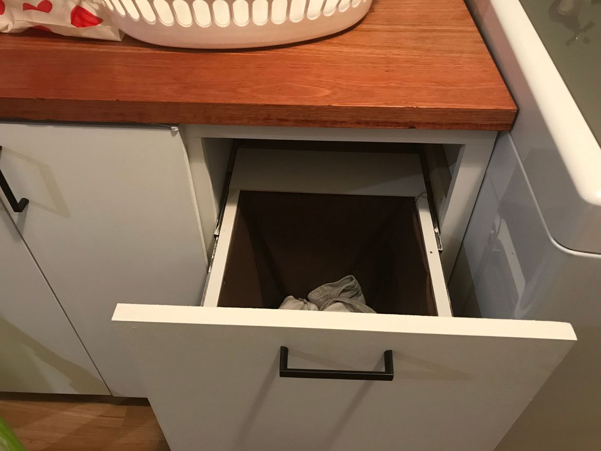 My favourite part of the laundry would have to be the pull-out laundry hamper I created.