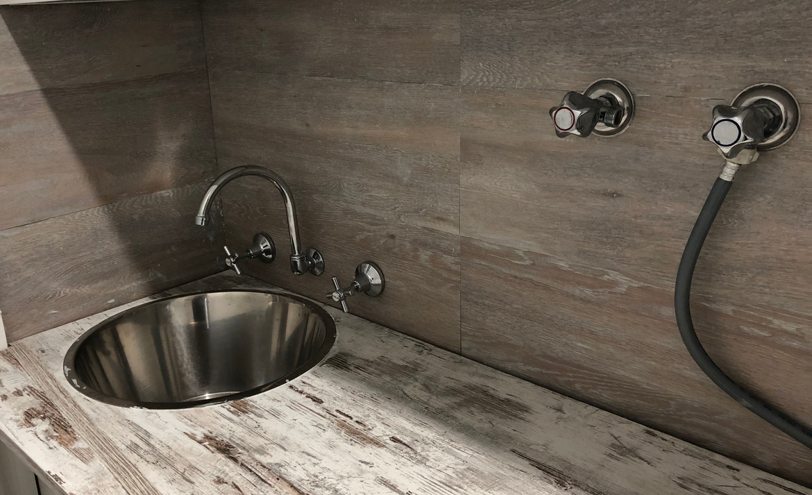 For our sink, I picked up the Estilo single bowl stainless steel square sink. I replaced all the tapware with a Shaw and Mason black washing machine set and a Shaw and Mason laundry set.