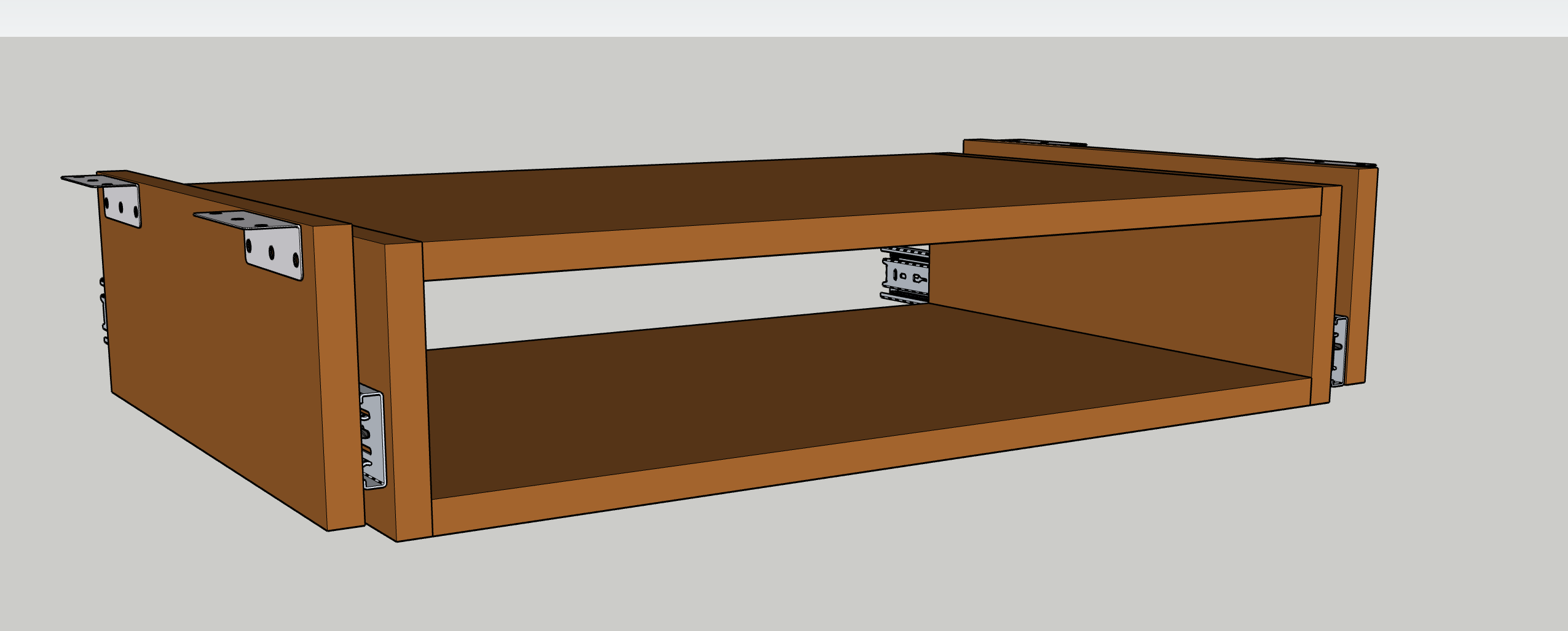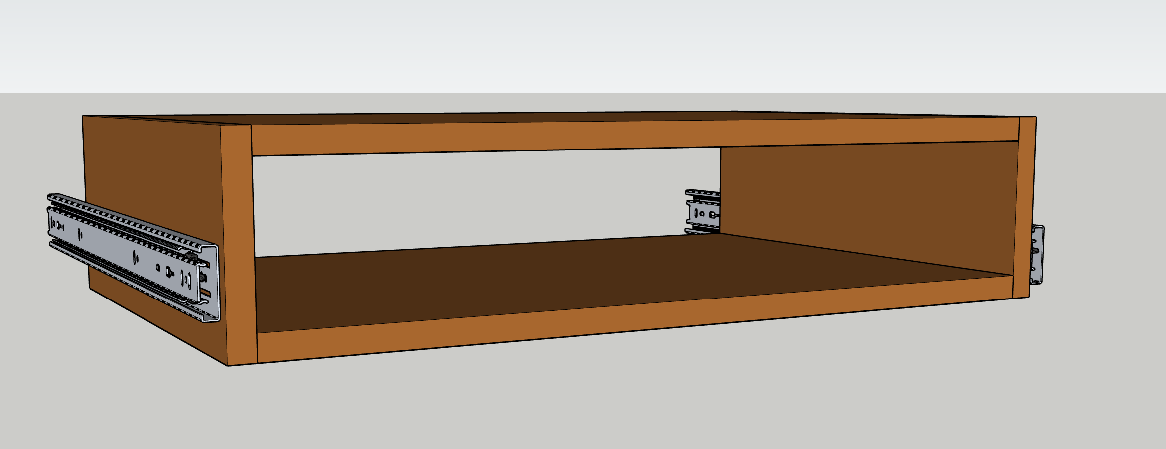 The idea is to essentially create a box, then add some side panels to attach the box to with some drawer slides.