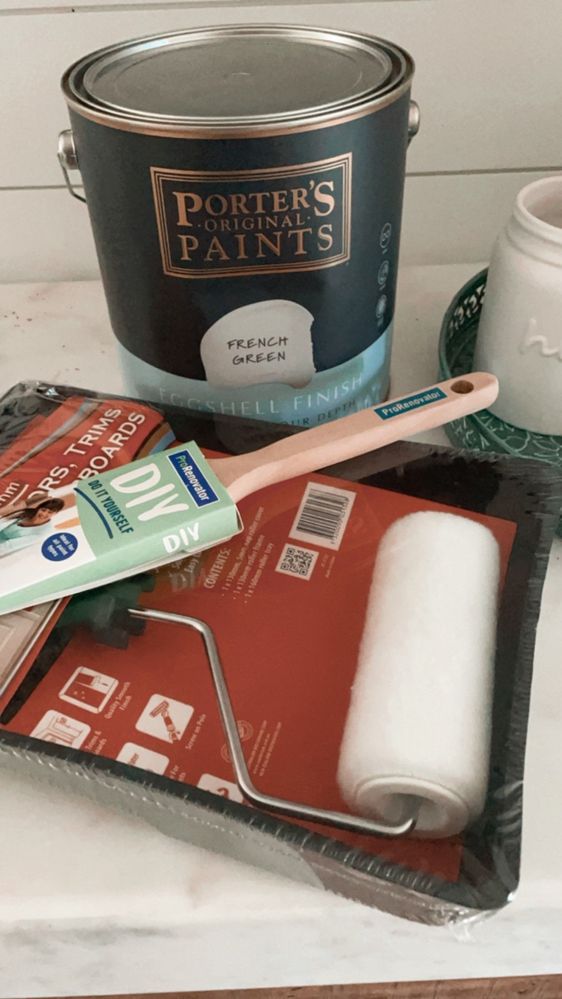 The fronts are a country profile in raw so we could paint them ourselves following the instructions on a Bunnings video. The colour and paint we used was Porters Paints in the French Green – bought at Bunnings – we also used this colour in our mudroom and love both the colour and finish of this paint.