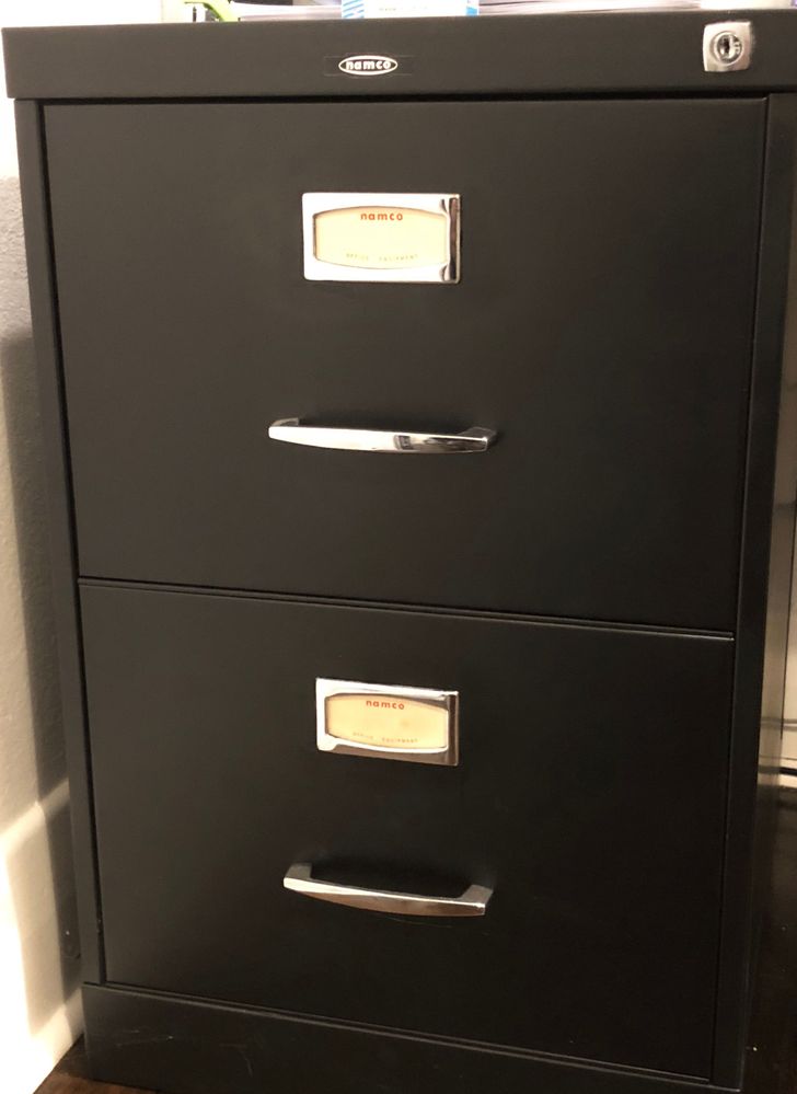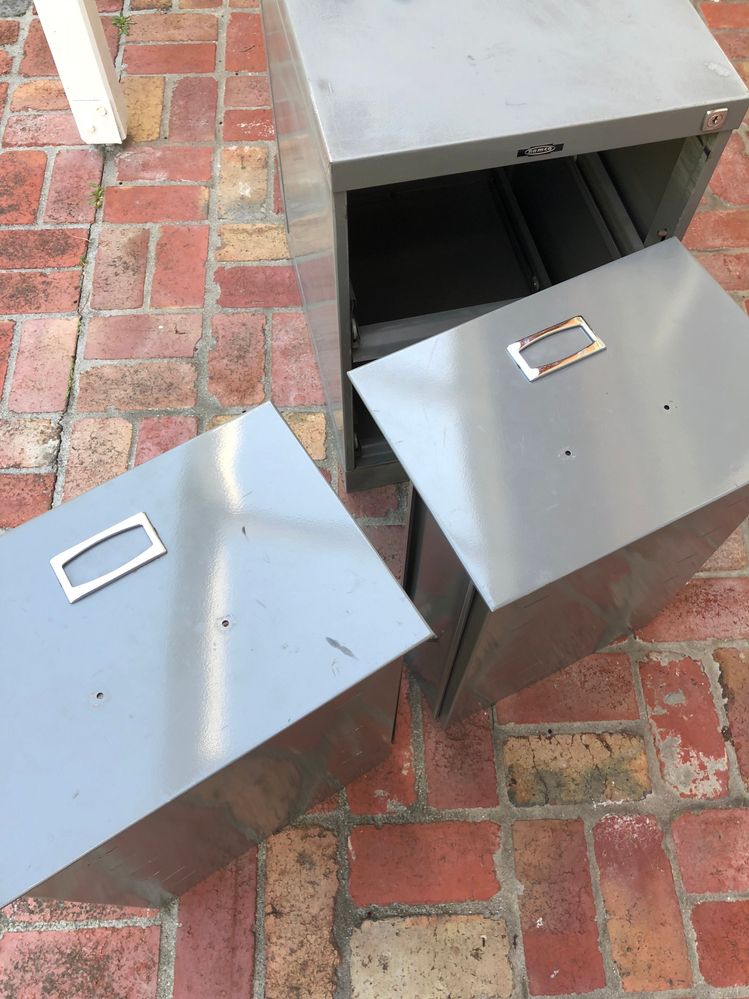 Once all the coats of spray enamel had dried, it was onto final assembly. The filing cabinet was the easiest job to finish with just a soak and wipe down of the polished handles and fittings in vinegar solution.