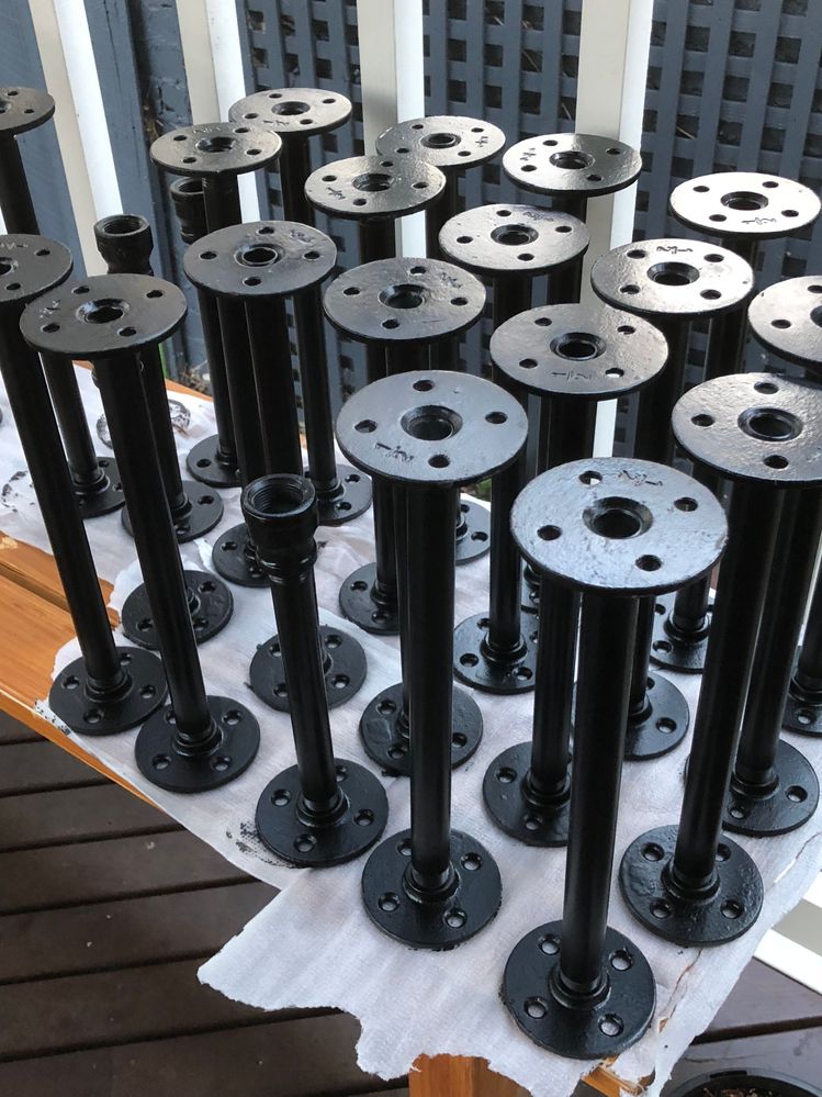 Next step was to prime and paint all the pipe and fittings – 115 pieces all up! After the last coat of primer, it was time for 2–3 coats of matte black spray enamel.