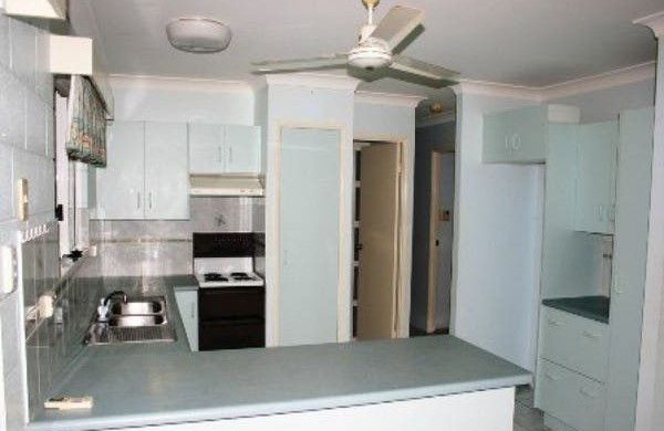 We installed a Kaboodle kitchen in egg white colour. The benchtops were made from solid timber panels. The splashback was an onyx-colored acrylic which added a nice highlighting colour touch. The same concept was used for the butler's pantry as well. Downlights were installed and the old oyster lights removed.