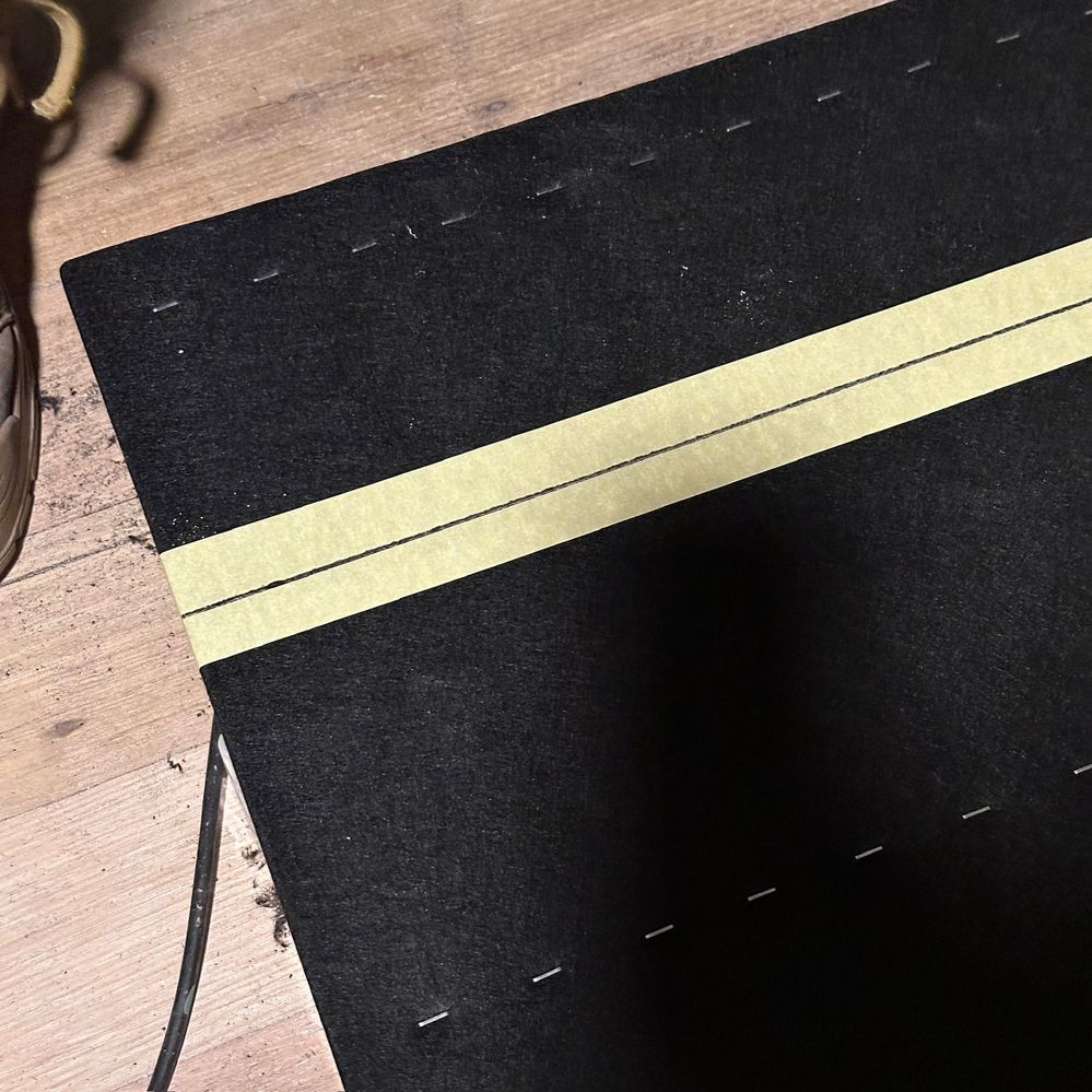 Tips: Work from the back of the panels, not the front. And use masking tape! This helps with marking as well as holding the felt when cutting with a circular saw.