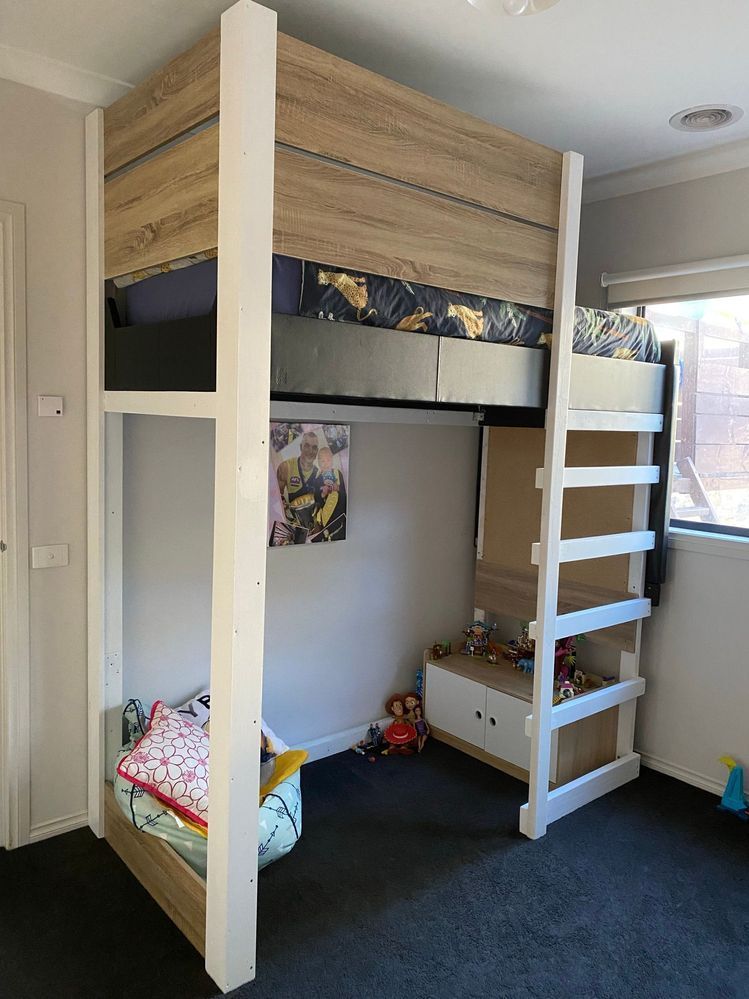 Experienced community member Tara undertook this kids bedroom upgrade with bunk bed, using light colours to make a small room bigger and brighter.