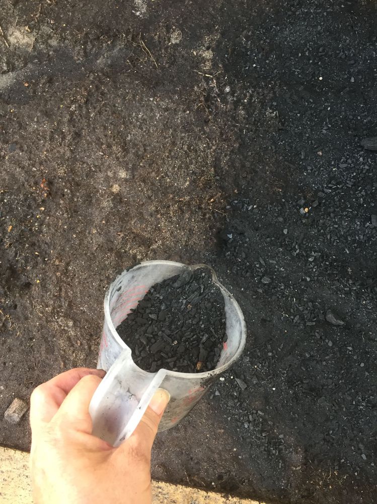My first priority was to add a wetting agent to to help with retaining water and nutrients. I used a crushed fine charcoal that is porous with tiny holes that help hold water and nutrients and encourage healthy microbial soil activity.