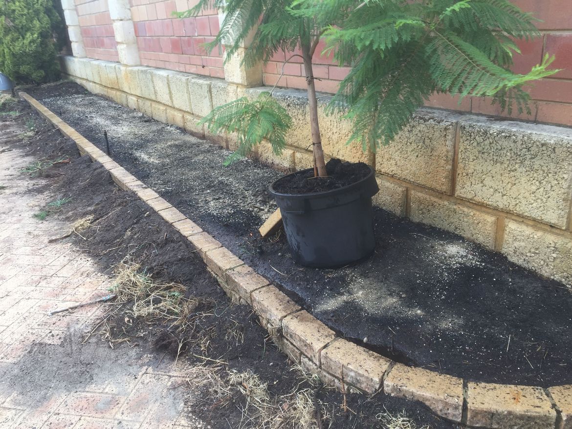 I began by removing a a couple of inches of our dreadful hydrophobic sand from the garden bed. I cultivated the sand and removed the remaining weed clumps and old dead roots from previous plants.