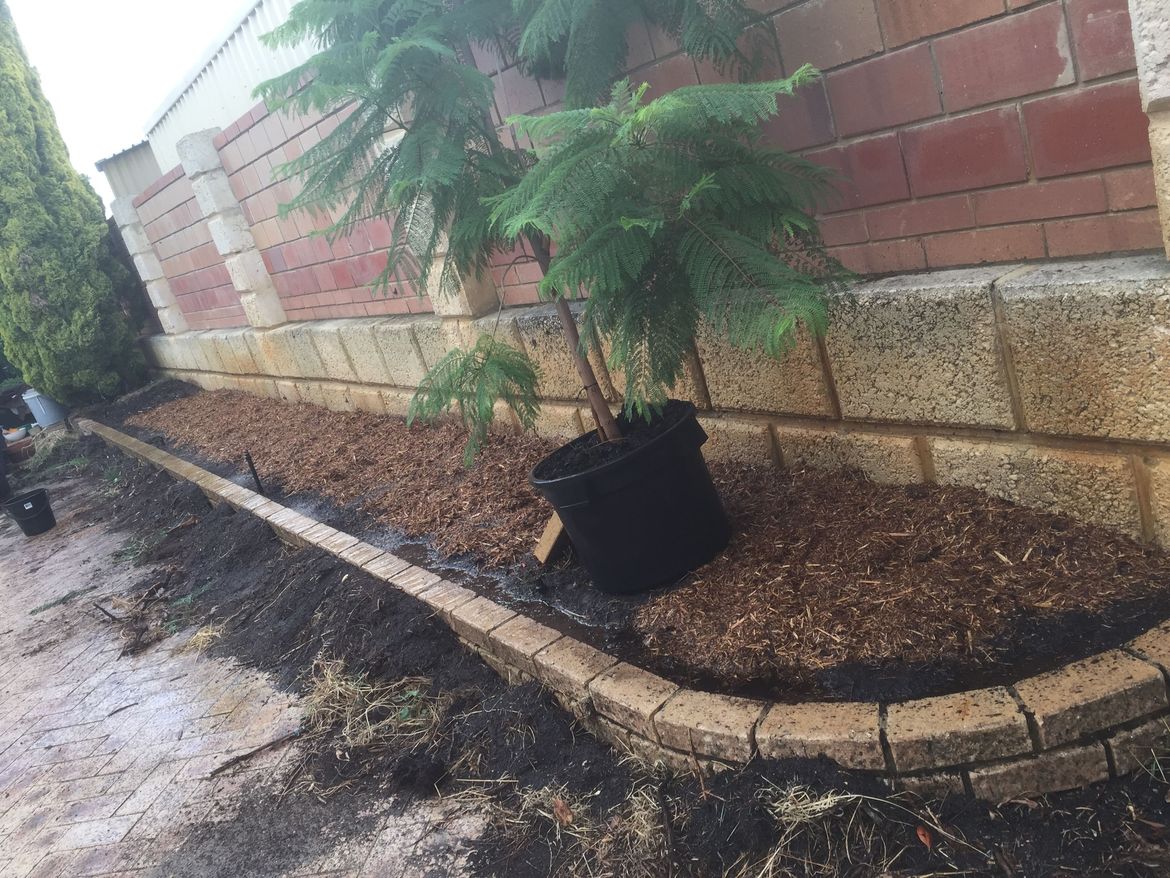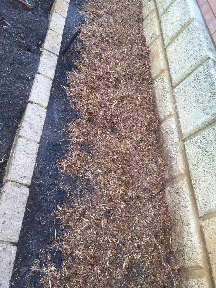 Notice that I didn't put mulch close to the edge as I built up the soil – I didn’t want it to spill over. The bed is 9m long and 90cm wide, and I used one full bale. Remember to wet the mulch when you open the bag so the dust doesn't fly everywhere.
