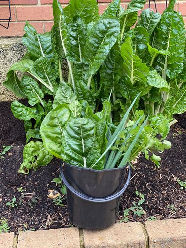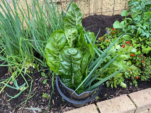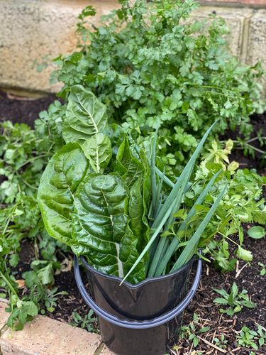 Still harvesting Winter edibles from our No Dig Organic garden bed.
