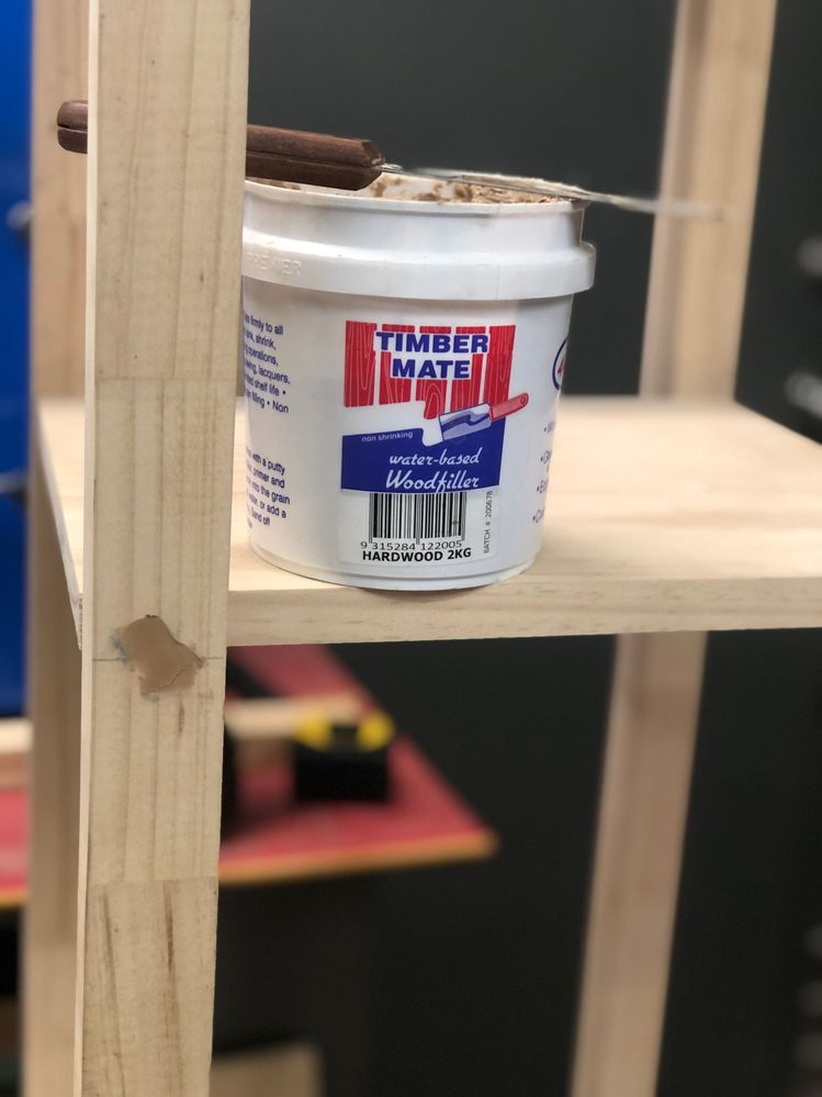 I used 30mm x 30mm DAR Pine for the frame, and standard DAR Pine boards for the shelves, which are screwed from the back.